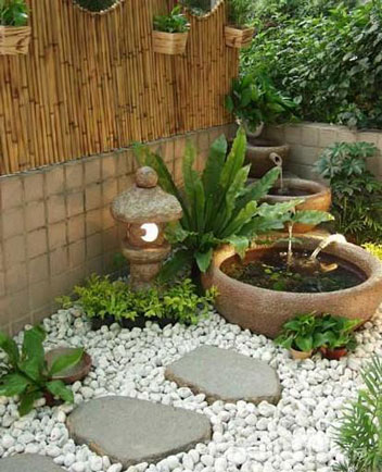 每个庭院都需要有一个焦点景物,整个庭院的设计就围绕着这个景点空间进行,大多数的院子都会以储存区为焦点景,而少数则以人工假山,小喷泉之类的人造景观作为焦点景物,突出层次重点。